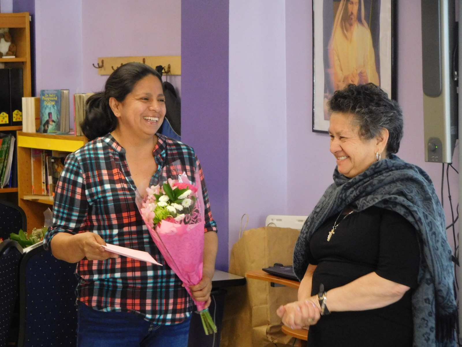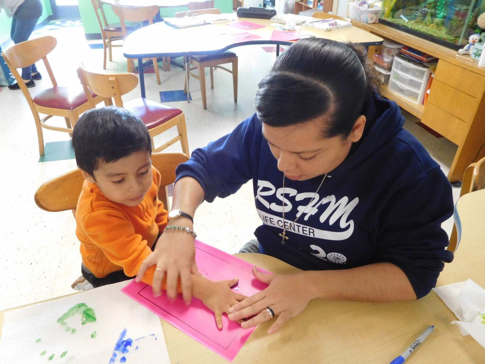 The Parents: We model positive parenting skills, guiding parents and caregivers to engage actively with their preschoolers, including singing nursery rhymes, reading books together and turning grocery shopping into fun learning. Two days a week parents study English as a Second Language. English is important for their own integration, and to support their children through their school years. We also offer workshops and discussion groups which encourage the participants, primarily women, to form relationships with one another, addressing the isolation common among immigrant women.